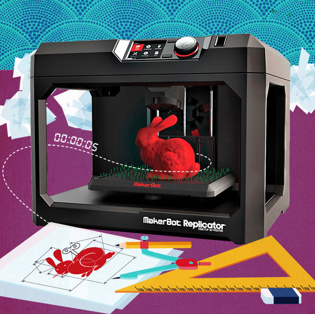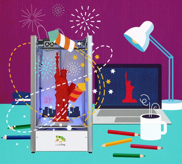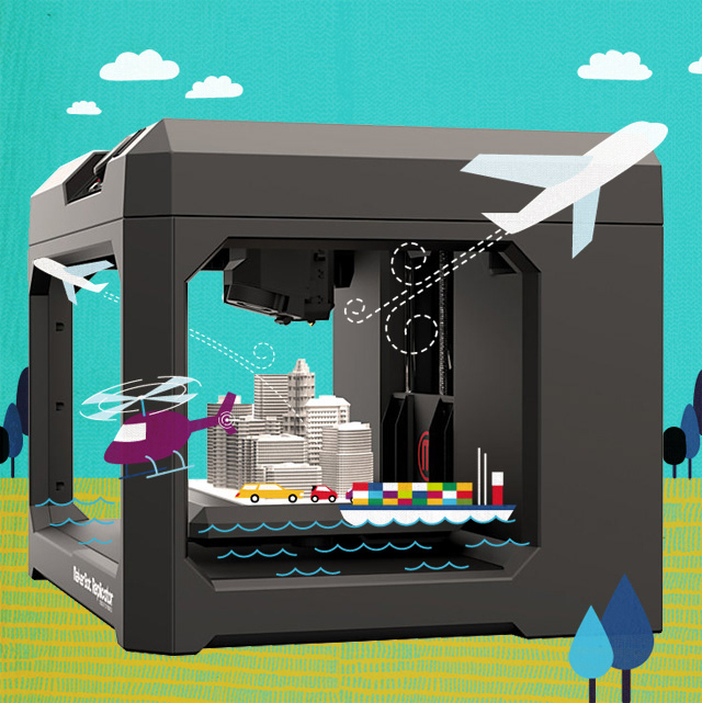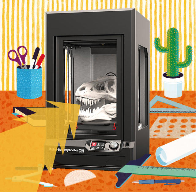 Illustrations over photos for an article about 3D printers.