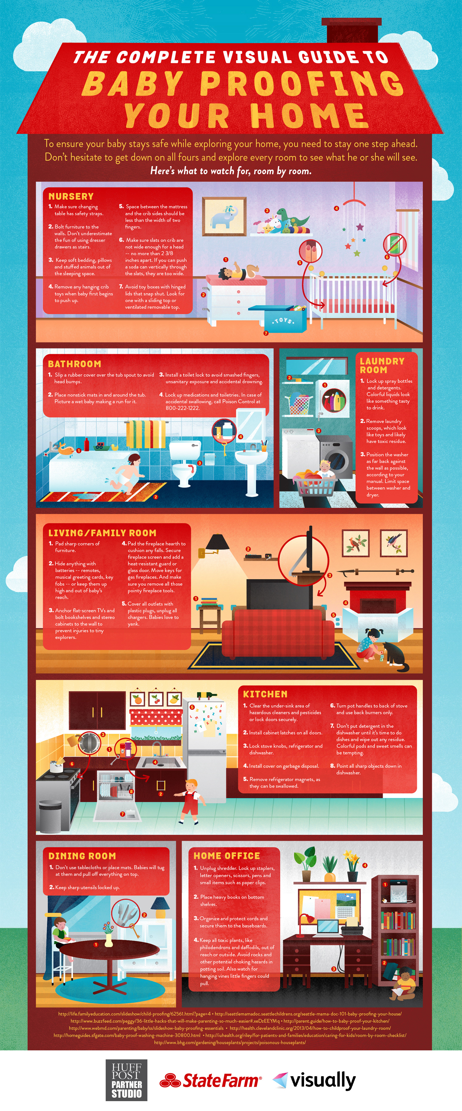 An infographic made for Huffington Post, to visually show new parents how to make their home safe for a new baby. Online link: http://www.huffingtonpost.com/2015/05/12/visual-guide-to-baby-proofing_n_6887802.html