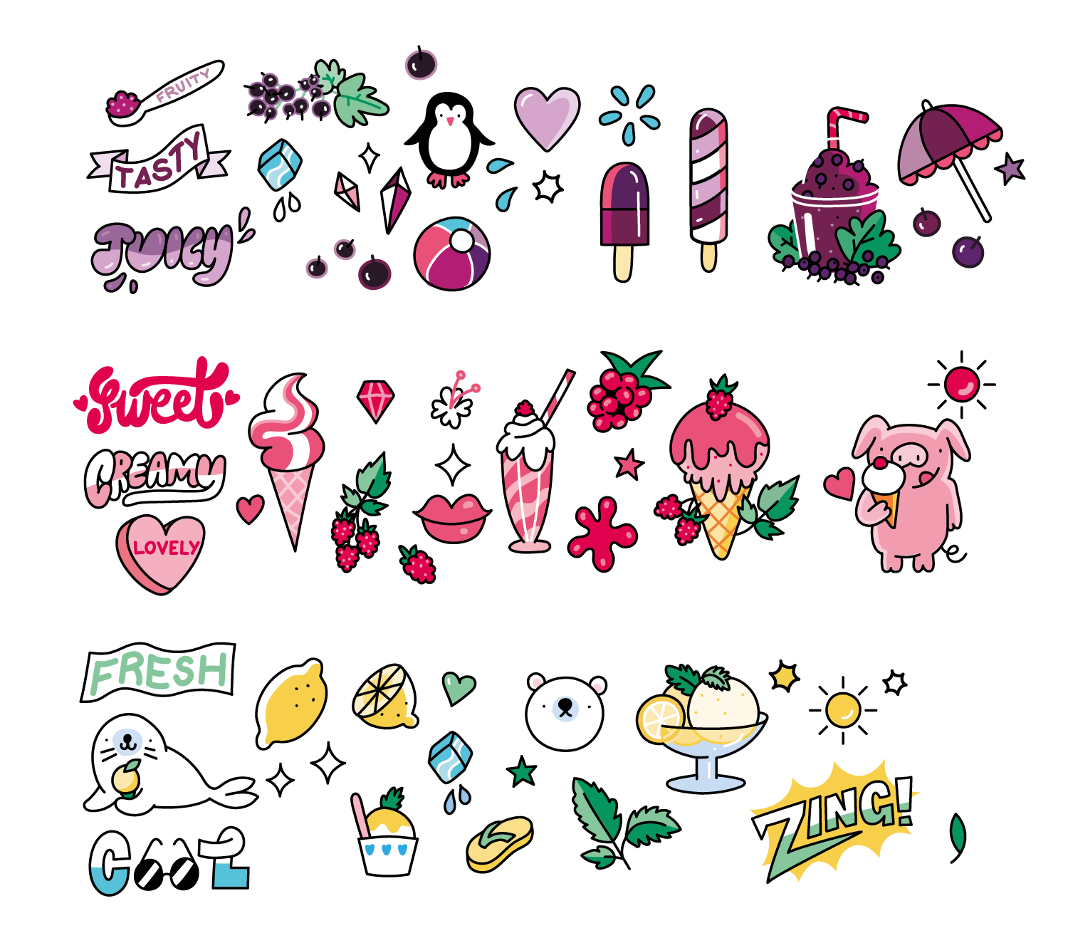 After the workshop, I went home and created illustrations for the different flavours to match their names given by the influencers during the workshop.