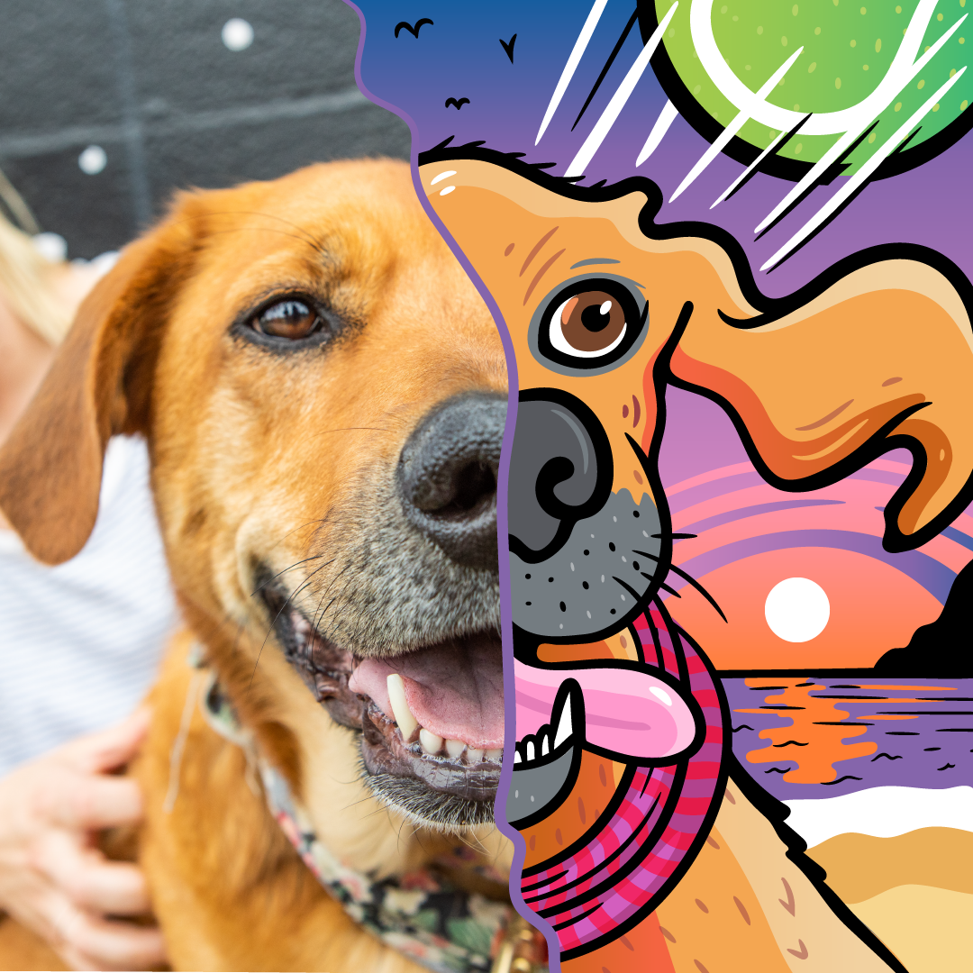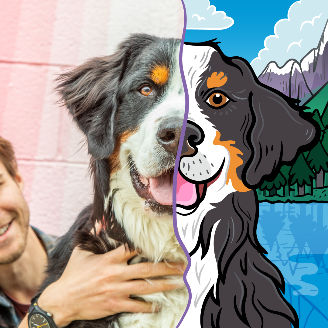 Half-portraits of some pets for the social media #CartoonMe challenge, featuring their favourite places to be.