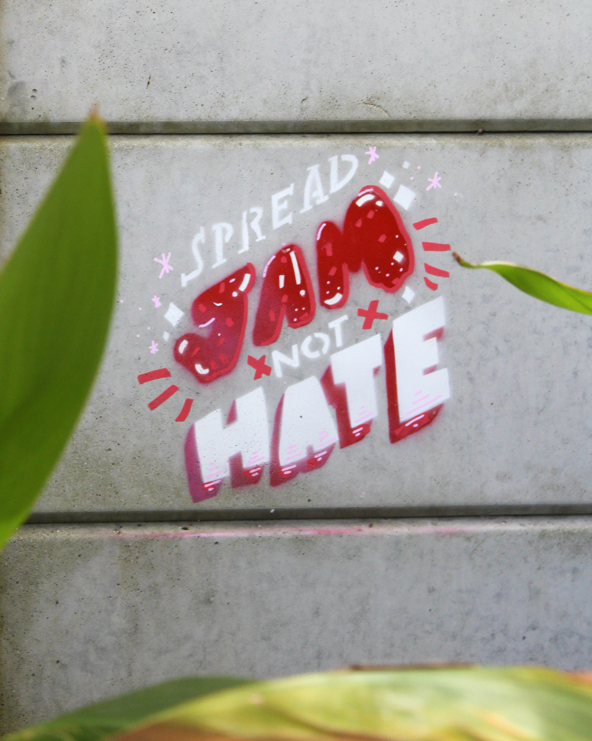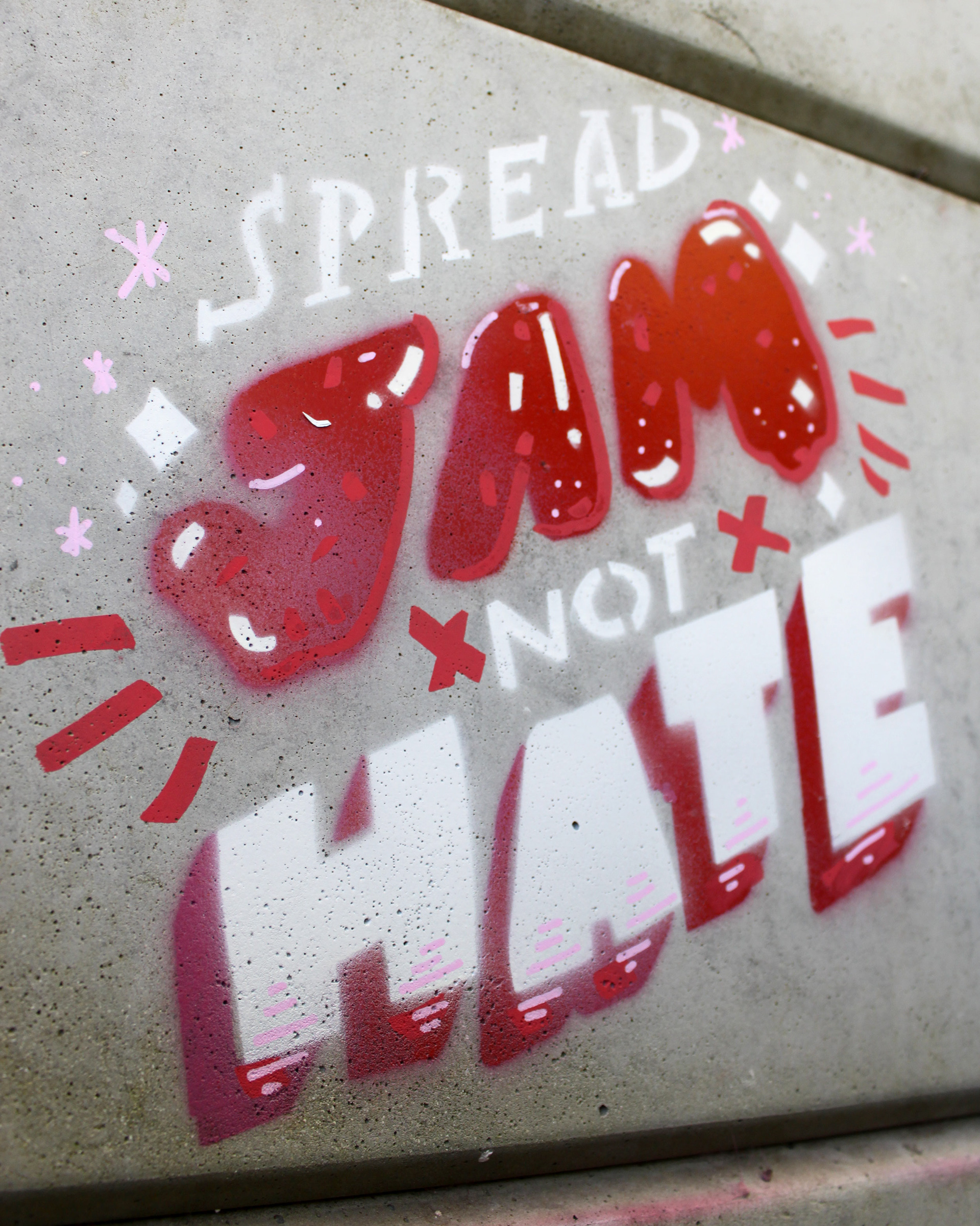 For this challenge, instead of the old "Spread love, not hate" message, we had to write our toast topping of choice. I love jam, so decided to make a typographic stencil for this week's challenge.