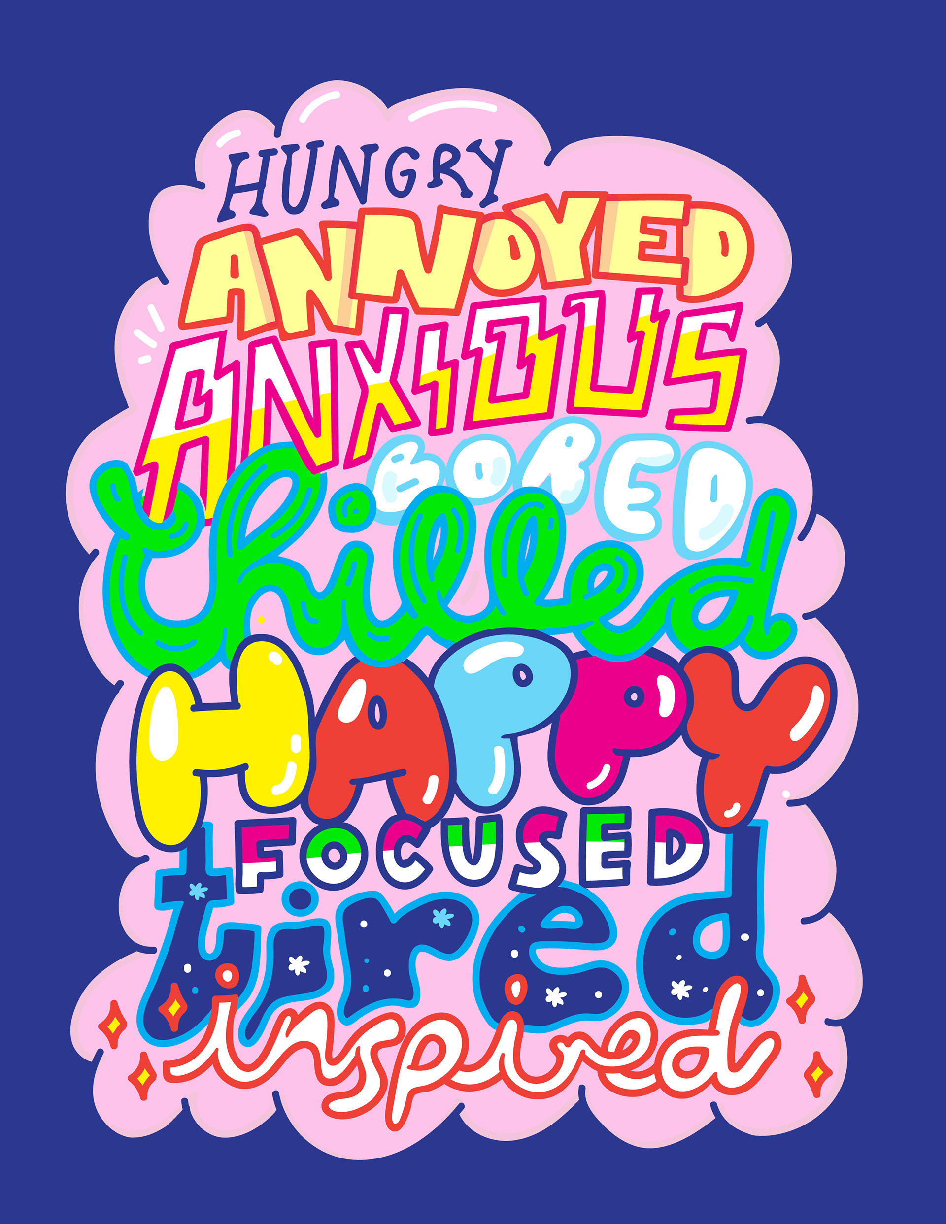 For this challenge, we had to letter some of the feelings and emotions we experience throughout the week,