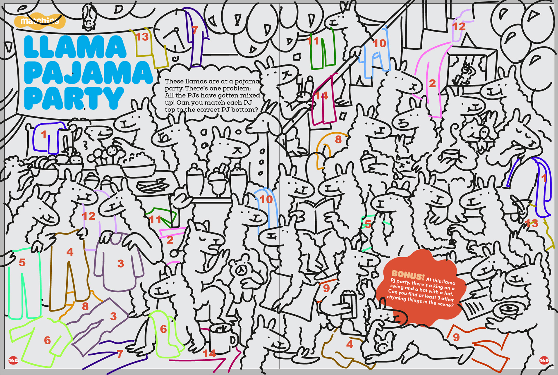 Pyjama search illustration for Highlights for Children, art direction by Nicole Lazarus.