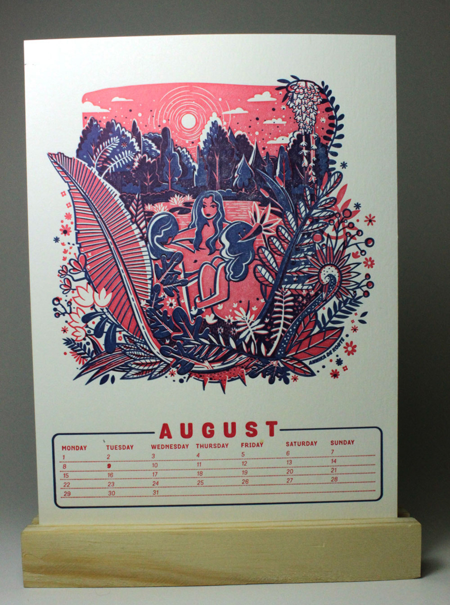 Illustration for August (Women's Month) for Essie Letterpress' 2016 Artist's Almanac